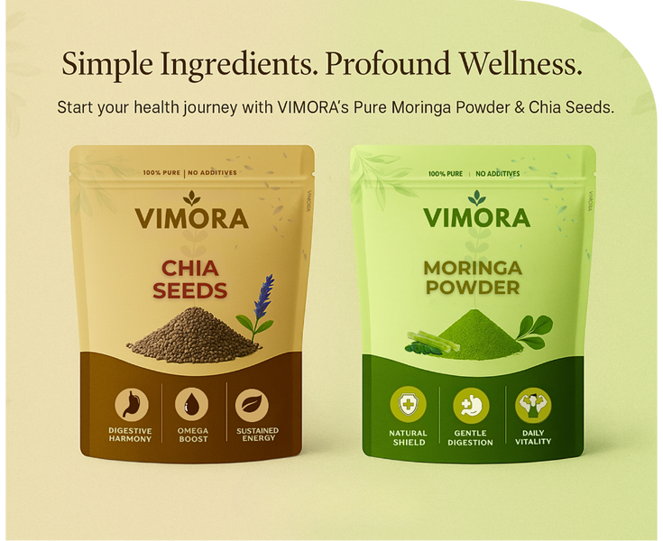 Yes, all VIMORA products are made with 100% natural ingredients. We ensure that our moringa powder and chia seeds are free from preservatives, artificial colors, or harmful chemicals — making them safe for everyday use.
